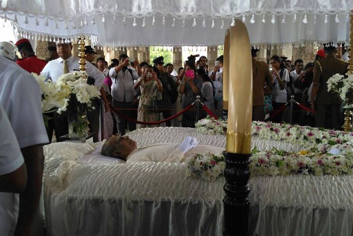අභාවප්‍රාප්ත ආචාර්ය පණ්ඩිත් ඩබ්ලිව්.ඩී. අමරදේවයන්ගේ දේහය මේ වන විට කොළඹ නිදහස් චතුරශ්‍රයේ තැන්පත් කර තිඛෙනවා.