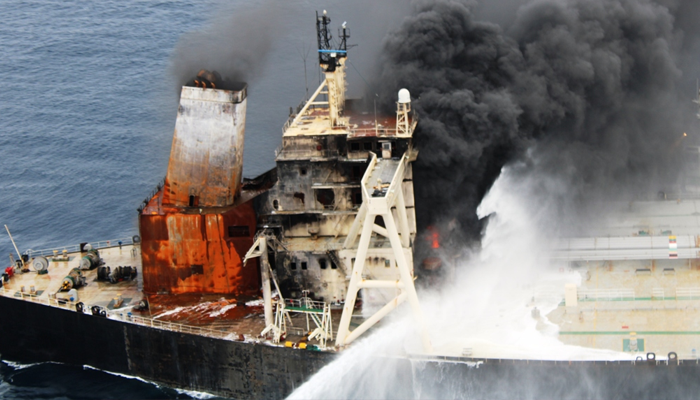 ශ්රී ලංකාවට නැගෙනහිර මුහුදේදී ගිනි ගැනීමට ලක්වූ MT නිව් ඩයමන්ඩ් නෞකාවේ ඉන්ධන සාගරයට කාන්දු වී ඇතැයි පරීක්ෂණවලදී අනාවරණ වී තිබෙනවා.