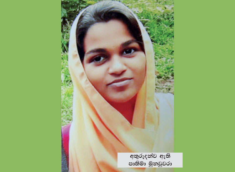 ඇය ගම්පොළ වැලිගල්ල ඇල්පිටිය ප්රදේශයේ පදිංචි ෆාතිමා මුනව්වරා නමැති 22හැවිරිදි තරුණියකි.