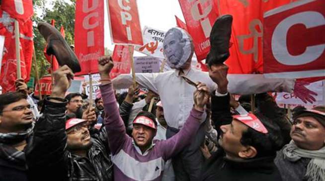 India’s communist parties on Saturday held a protest march and burned an effigy of President Barack Obama on the eve of his New Delhi visit, voicing fears of a US domination in economic, nuclear and defense ties with India.
